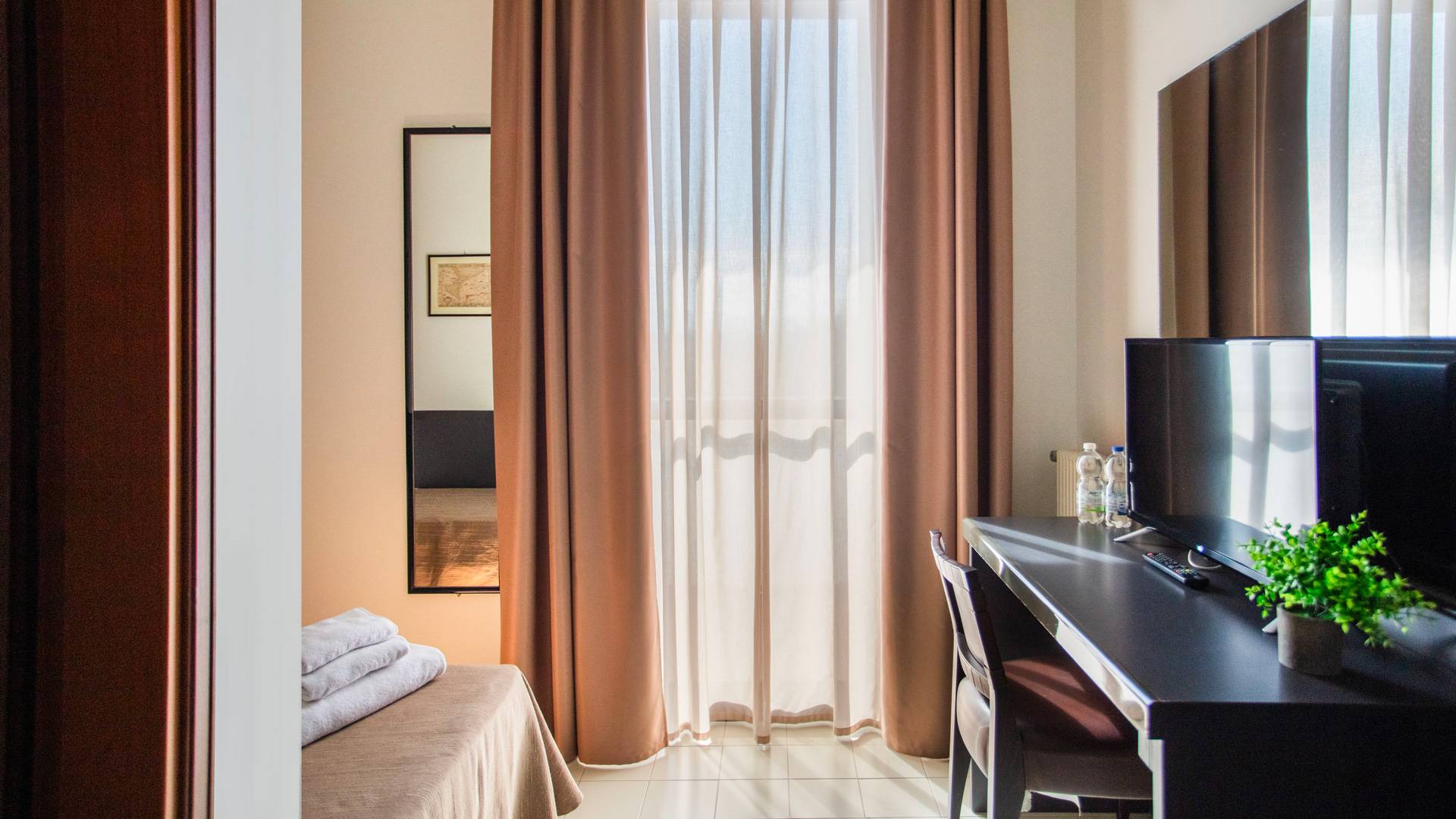 Le camere di Hotel Verdemilia offrono ambienti tranquilli e confortevoli, ideali per viaggi di lavoro o soggiorni di piacere.